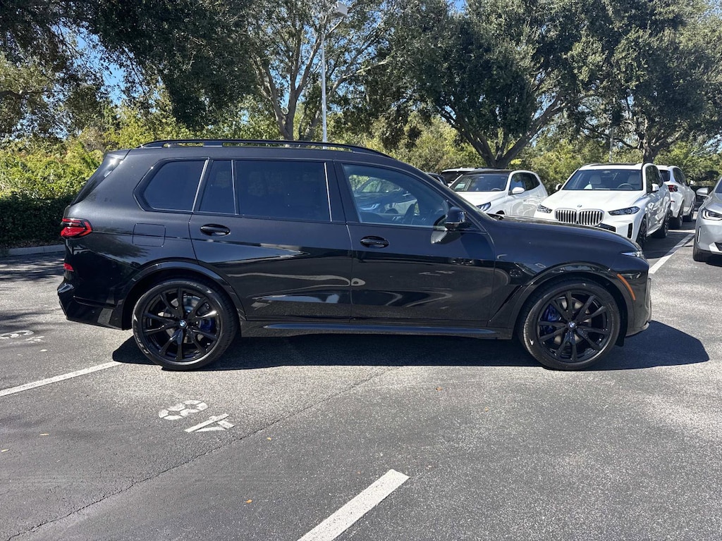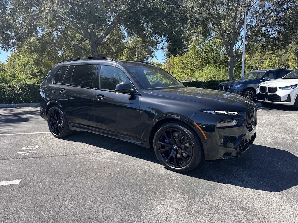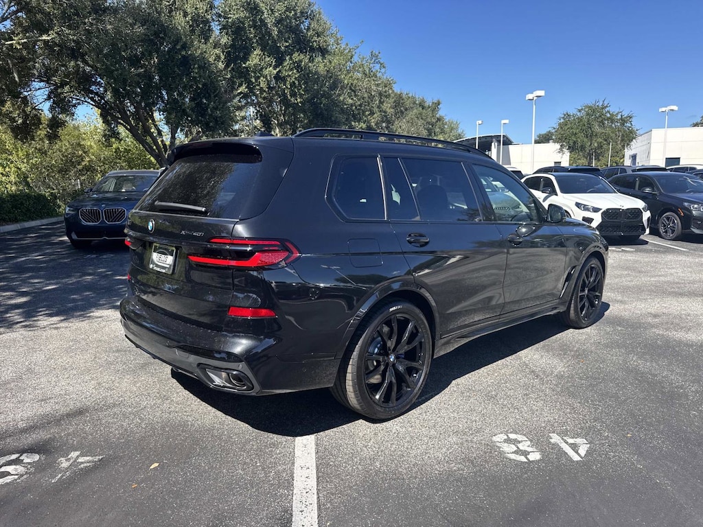 EXECUTIVE PACKAGE Heated & Cooled Cup Holders, Soft-Close Automatic Doors, Glass Controls, harman/kardon® Surround Sound System, Front Massaging Seats, Electric Rear Side Window Shades, Panoramic Sky Lounge LED Roof, M SPORT PACKAGE Shadowline Exterior Trim, Wheels: 21 x 9.5 Dual-Spoke Bicolor Orbit Grey, (Style 754M), Fineline Black Wood Trim, M Steering Wheel, Anthracite Alcantara Headliner, M Sport Package (337), Without Lines Designation Outside, Roof Rails in High-Gloss Shadowline, Aerodynamic Kit, DRIVING ASSISTANCE PROFESSIONAL PACKAGE automatic park assistant, back up assistant, trailer assistant and parking view w/3D view (surround view), Lane Change Assistant, Distance Control (ACC) w/Steering Assistant, Driving Assistant Professional, Partial Automated Driving, Limited Term Highway Assistant, Highway assistant adds hands-off driving up to 85 mph on limited access highways, The driver remains responsible for the vehicle and must keep their view on the road, CLIMATE COMFORT PACKAGE Front Ventilated Seats, 5-Zone Automatic Climate Control, Front & Rear Heated Seats, WHEELS: 22 X 9.5 FR & 22 X 10.5 RR V-SPOKE (Style 755M), Jet black, Tires: 275/40R22 Fr & 315/35R22 Rr Runflat, Staggered summer, Increased Top Speed Limiter. BMW xDrive40i with Black Sapphire Metallic exterior and Black interior features a Straight 6 Cylinder Engine with 375 HP at 5200 RPM*.